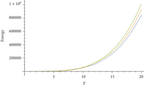 Equation (42) is the non-Abelian Stefan-Boltzmann law with corrections due to the non-Abelian aether term which leads to the Lorentz symmetry breaking. This correction affects all self-interactions of gluons. The temperature dependence is different for each contribution. In the high-temperature limit, the correction with dependency is dominant, while for low-temperature, the four-gluon self-interaction term is dominant. Furthermore, in the case where the non-Abelian aether term is zero, the standard non-Abelian Stefan-Boltzmann law for gluons is recovered. In order to visualize the corrections due to the aether term, in Figure 1, the energy as a function of temperature is plotted. However, as a first approximation, only the first term is considered, since the product of the Dirac delta functions is not well defined.