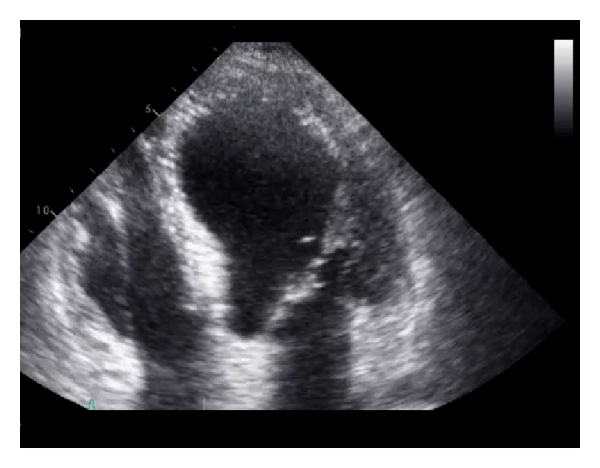A 78-year-old female with a past medical history of diabetes mellitus type II, hypertension, osteoporosis, and asthma was brought into the emergency department by ambulance with severe shortness of breath. She was afebrile, tachypneic (respiratory rate of 28 rpm), with an elevated blood pressure of 185/105 mmHg and heart rate of 111 beats per minute. Her chest X-ray revealed a large left-sided tension pneumothorax. Because of impending respiratory failure, she was intubated and placed on mechanical ventilation. A chest tube was inserted with subsequent reexpansion of the left lung. The patient was admitted to the intensive care unit for monitoring. Cardiac biomarker, troponin I, was found to be elevated at 16.529 ng/mL (reference range: ≤0.1 ng/mL). Serial Electrocardiograms (ECGs) done over the course of 12 hours demonstrated sinus bradycardia, alternating with sinus tachycardia and normal sinus rhythm. Anterior Q waves were seen, along with dynamic T-wave changes and transient ST-segment elevation was also noted in the lateral leads. Transthoracic echocardiogram revealed global left ventricular hypokinesis sparing the basal segments, apical ballooning, and severe systolic dysfunction with an estimated left ventricular ejection fraction (LVEF) of 13% (Figure 1).