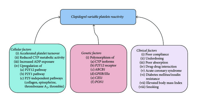 Other multiple nongenetic factors interfere with clopidogrel response. Clinical factors such as concomitant diseases, drug-drug interaction, patient’s compliance, obesity, and age are known to influence clopidogrel response. In addition, lifestyle factors such as smoking and diet can also affect the response.