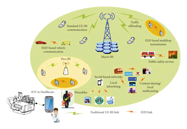 The D2D devices can allow direct communication between devices that are close to each other to deliver or share multimedia content. This can be made possible by applying proper device discovery and pairing algorithms to enhance performance targets such as energy efficiency, sum rate, and connection density. Some of the services that can be offered as social-aware D2D services include local advertisements, multimedia content sharing, and playing games [6, 27].