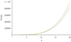 Equation (42) is the non-Abelian Stefan-Boltzmann law with corrections due to the non-Abelian aether term which leads to the Lorentz symmetry breaking. This correction affects all self-interactions of gluons. The temperature dependence is different for each contribution. In the high-temperature limit, the correction with dependency is dominant, while for low-temperature, the four-gluon self-interaction term is dominant. Furthermore, in the case where the non-Abelian aether term is zero, the standard non-Abelian Stefan-Boltzmann law for gluons is recovered. In order to visualize the corrections due to the aether term, in Figure 1, the energy as a function of temperature is plotted. However, as a first approximation, only the first term is considered, since the product of the Dirac delta functions is not well defined.