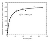 The data are analyzed according to a simple binding equation, nA + B = AnB where A is the actin protomer in F-actin, B is Hsp27 irrespective of its oligomeric state, and n is the actin/Hsp27 molar binding stoichiometry. The binding is described by the equation: nb2 − (KD+ nb + a) + a = 0 where b is the total concentration of Hsp27 which is held constant, a is the total concentration of actin which is varied, KD is the dissociation constant, andis the fractional saturation of binding sites, i.e. [AB]/nb, which is equal to the fractional increase in fluorescence enhancement and is a root of the quadratic solution to the above equation. One can extract n and KD by fitting a quadratic solution to the binding equation to the data points using an unweighted, nonlinear least squares fitting procedure [35, 36].