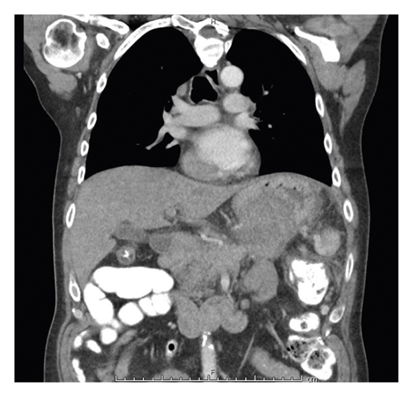 To date, no definitive diagnostic approach or therapy for intramural/perigastric hematomas has been proposed. Considering the precarious nature of these hematomas, endoscopic procedures may exacerbate bleeding diatheses, particularly with biopsies or submucosal injections. Upon discovery of an intramural gastric hematoma, initial management generally requires appropriate blood and volume resuscitation and correction of any coagulopathy. It appears that most cases are managed conservatively depending on the patient’s hemodynamic stability [10–12]. Conservative management in these cases essentially involves blood transfusions, symptom control, correction of underlying conditions, and serial monitoring. If no improvement is observed, subsequent management might require surgery, angiography, and vascular embolization through IR [13–15]. Specifically for pancreatitis-induced gastric hematoma, most cases were managed conservatively except for one requiring percutaneous drainage. For our patient, further evaluation from surgery and IR recommended no immediate intervention. Our patient was monitored for improvement of the hematoma and remained stable throughout discharge.