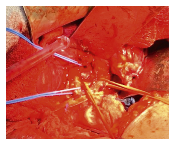 On postoperative day 1, the patient was dyspneic and tachypneic. A CT chest pulmonary embolism (PE) protocol was done and the result showed the presence of bilateral PE. The patient was started on therapeutic anticoagulation. He received two units of blood on postoperative. Diet started on day 2 postoperative well tolerated and progressed. Laboratory studies were stable and showed no liver failure. The drain output was serosanguinous and minimal throughout the stay, removed on day 5 postoperative, and patient was discharged home.