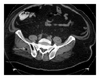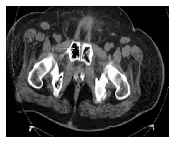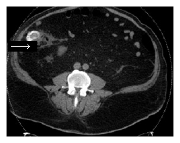 Clostridium septicum was first isolated from the blood of a cow in 1877 by L. Pasteur and J. Joubert. In 1881, R. Koch proved the organism to be responsible for malignant edema, which is defined as acute, rapidly fatal toxaemia usually caused by Clostridium species. C. septicum is a Gram-positive, anaerobic, spore-forming bacillus that normally grows in soil and is a causative agent of atraumatic myonecrosis [4]. C. septicum produces multiple exotoxins, including alpha, beta, gamma, and delta toxins. Of these, the alpha toxin is lethal, hemolytic, and necrotizing; however, unlike the alpha toxin of C. perfringens, the mechanism by which the alpha toxin of C. septicum contributes to pathogenesis is unknown. Nevertheless, it remains an important virulence factor in C. septicum mediated myonecrosis [5]. Although rare, in the setting of malignancy or immunosuppression, it is associated with direct, spontaneous infections of the bowel and peritoneal cavity. The anaerobic glycolysis of the tumor produces an acidic, hypoxic environment favoring germination of clostridial spores [6]. Tumor-induced mucosal ulceration causes disruption of the normal barrier, which allows for translocation of the sporulated bacteria from the bowel into the bloodstream leading to fulminant sepsis. Once the malignancy outgrows its blood supply, the anaerobic environment created is ideal for bacterial growth [7]. Mucosal disruption can also be caused by bowel perforation, surgery, radiation, or a medical procedure such as colonoscopy or barium enema. Impaired host immunity from alcohol abuse, steroids, atherosclerosis, diabetes, or neutropenia is also believed to facilitate translocation. C. septicum is more aerotolerant than C. perfringens; thus it is more likely to infect healthy tissue. The clinical spectrum of C. septicum varies and can present as cellulitis, fasciitis, myonecrosis, abscess, aortitis, or septic shock. However, this bacterium can also present with nonspecific symptoms including abdominal pain, fever, and malaise [8].