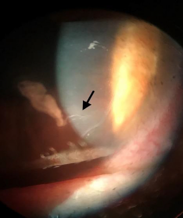 A 61-year-old woman presented to the eye clinic at the American University of Beirut Medical Center (AUBMC) complaining of redness, decrease in vision and pain in her right eye. It had started 5 days ago following a soft contact lens (CL) application for a few hours. She had never worn a contact lens before. She self-medicated with an eye drop containing tobramycin and dexamethasone, 1 drop four times daily, and reported slight improvement. Past medical history review was significant for a LASIK procedure to correct myopia 15 years ago not necessitating retreatment. On her last follow-up exam 3 months prior to presentation, her corrected distance visual acuity (CDVA) was 20/20 in her right eye, wearing +2.25 −1.00 × 120. At the time, the corneal exam featured a clear, well placed flap in both eyes without the presence of any epithelial ingrowth.