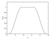 Here is the maximum strength of the fringe, and denote the spatial extent of the region where the fringe is nonzero, and and are the rise and fall distance of the fringe function, respectively. Figure 1 shows how the fringe function varies with with and . is a continuous step function that varies from zero for to unity for and is given byThe advantage of this expression is that has continuous derivatives of all orders.