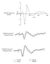 One electroencephalogram (EEG) channel was recorded from electrodes placed at Cz and M1. A second channel to monitor vertical eye movements and eye blinks (EOG) was recorded from electrodes over the left supraorbital ridge of the frontal bone and over the zygomatic bone under the left eye. A fifth electrode on the nape of the neck served as ground. Electrode impedances were maintained below 5000 Ohms. Recordings were made using Neuroscan Synamps 2 and Scan 4.3 software. The EEG and EOG channels were amplified, filtered (1–30 Hz), and digitized (5000 Hz), using a 700 ms analysis time (including a 100 ms prestimulus baseline). Single-trial epochs were saved for offline processing, including baseline correction across the total sweep duration, artifact rejection (±100 μV in any of the channels, and ±75 μV in the EOG channel), and averaging. The stimulus was presented in each test condition until at least 200 accepted trials were obtained. Epochs were averaged separately for each condition, and average data were divided into odd and even trials to serve as replications (thereby ensuring any changes in subject state or noisiness were equivalent across replications). Averages were baseline-corrected using the prestimulus interval.