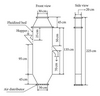 A solar assisted heat pump fluidized bed dryer integrated biomass furnace was designed and installed at the Institute of Technology, Padang, West Sumatra, Indonesia. The drying system consists of finned single-pass solar collector, heat pump, biomass furnace, fluidized bed, cyclone, and blower as shown in Figure 1. The solar collector equipped with transparent cover glass material, absorber plate finned used aluminum and black painted opaque, angle iron frame, inside and outside the collector coated with aluminum 1 mm thickness, and insulation using glass fiber materials. Two solar collectors are connected in series with an area of 1.8 m2 each, shown in Figure 2. The heat pump consists of several main parts: evaporator, condenser, compressor, and expansion valve. The working fluid of the heat pump is R-22. Compressor use of electrical capacity is 0.5 HP. The dimension of evaporator and condenser of the heat pump is shown in Figure 3. The biomass furnace consists of several main parts such as the combustion chamber, heat exchanger, chimney, and blower. The wall of the combustion chamber uses brick, cement, and steel plate materials and heat exchanger pipes using mild steel with diameter of 2 inc and the number of pipes is 16 units, in which dimension of biomass furnace is shown in Figure 4. The fluidized bed consists of several main parts such as drying chamber, air flow distribution, and the inlet and exit of paddy. The front part of the drying chamber is covered with clear glass with a thickness of 5 mm, and the sides and back are covered with 3 mm thick aluminum plate, while the air distributor used wire aluminum gauze and dimensions as shown in Figure 5. Cyclone is covered with aluminum plate with 3 mm thickness, and its dimensions are shown in Figure 6. The drying air was circulated by using centrifugal blower (BFD) with 3.7 kW power (three phases).