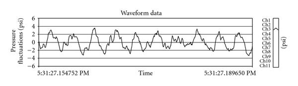 A typical pressure fluctuation history (for two shaft revolutions time, 0.034 second) and the frequency spectrum, FFT, at location 3 are shown in Figure 6 for original gap of 3.6 mm, at design capacity (1 psi = 6894.75 Pa). Dominant peak occurred at a frequency of 295 Hz, which corresponds to rpm or the first blade-passing frequency (1st BPF). The amplitude and strength of these fluctuations increased as the pump operated at off-design flow rate as shown in Figure 7. All other locations inside the pump experienced similar behavior [1].