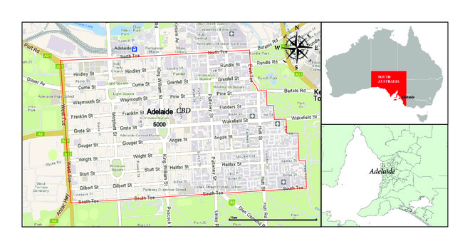 Adelaide Central Business District (CBD) in South Australia is selected as the study case, as it attracts 22% of metropolitan Adelaide’s work trips [40] and has the first and the second most dangerous accident concentration areas which are North Terrace and West Terrace in the CBD [41].