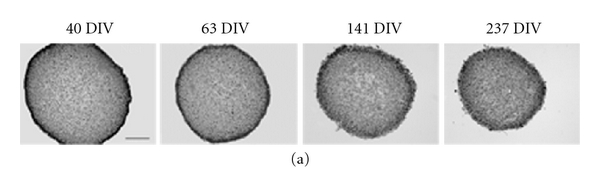 Few β Tubulin III-positive cells were seen in the NTS cultures (Figure 5(e)). In cultures grown for 40 days, the β Tubulin III-positive cells showed a well-preserved neuronal morphology characterized by a distinct soma with dendritic and axonal ramifications (Figure 5(e); 40 DIV). In older cultures, the morphology was less defined, and primarily β Tubulin III-positive cell processes could be identified (Figure 5(e); 141 and 237 DIV).